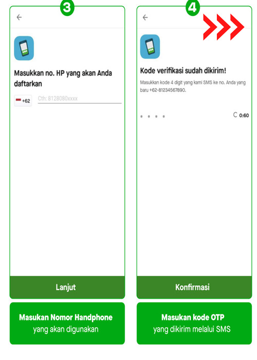 - Masukanlah Kode OTP yang dikirim via SMS ke nomor HP yang Anda masukan