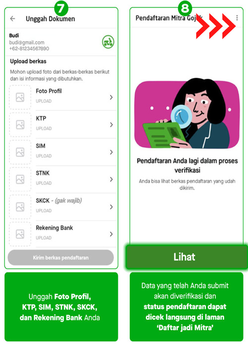 Demikianlah syarat dan Cara Mudah Mendaftar Gojek untuk menjadi Mitra Gojek. Lengkapi dan ikuti seluruh tahapan di atas yang diperlukan untuk di upload. Tunggu apalagi, ayo siapkan HP Anda dan langsung daftar untuk jadi Mitra Gojek!